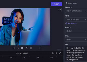 También puedes utilizar la aplicación Clipchamp para editar vídeos online. Utilice bien las diversas funciones existentes. Utilice la función de conversión de texto a voz para poder crear locuciones fácilmente. - Generador de voces Play.ht A continuación, puedes utilizar Play.ht para crear locuciones fácilmente. Esta aplicación de generación de voz con IA puede facilitarle la creación de sonidos similares a voces humanas reales.